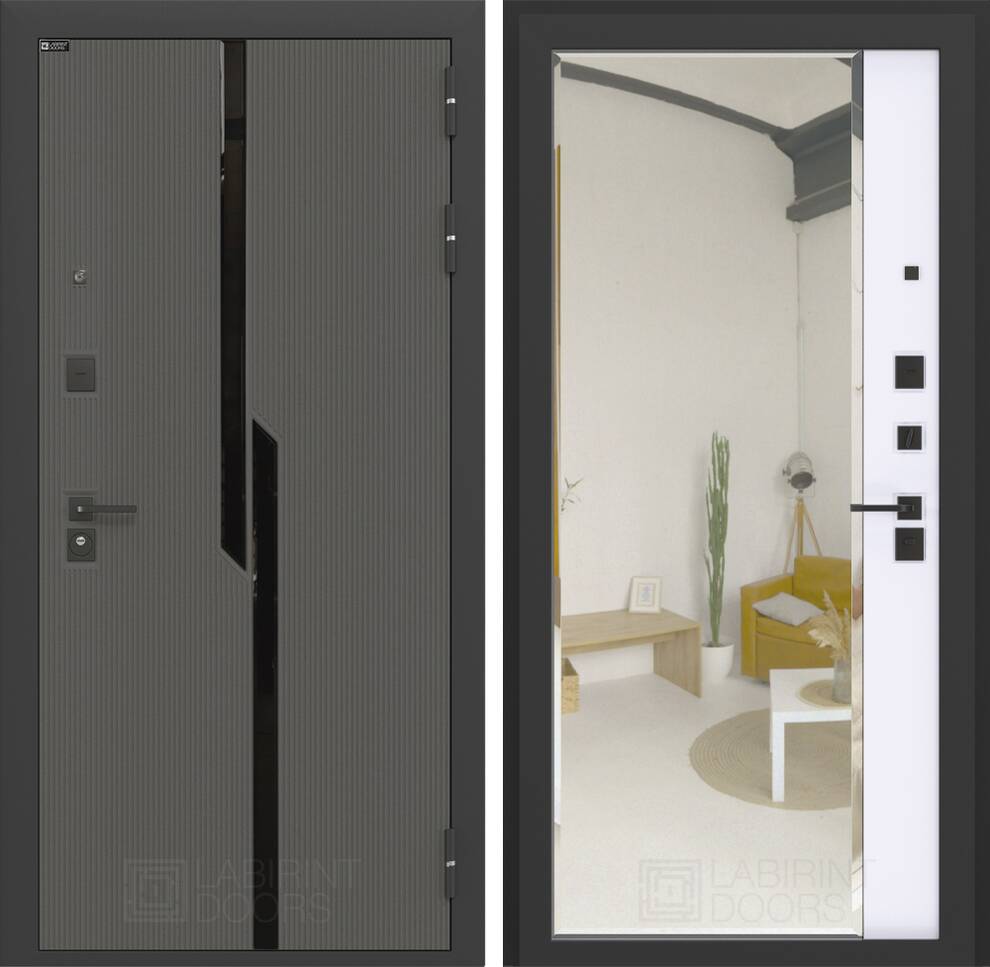 Входная дверь ART LT-17 | внутри с зеркалом Панорама - Белый софт