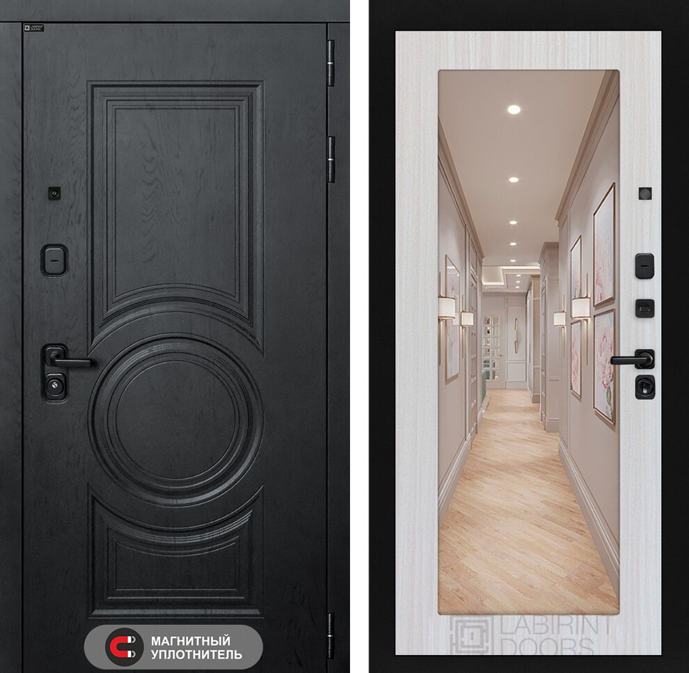 Входная дверь ART LT-18 | внутри с Зеркалом 18 - Сандал белый