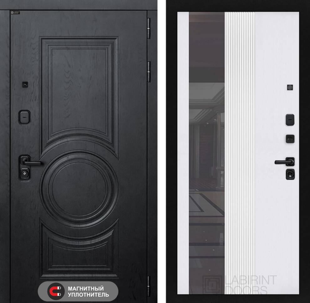 Входная дверь ART LT-18 | внутри с Зеркалом 32 тонированным - Белый рельеф софт