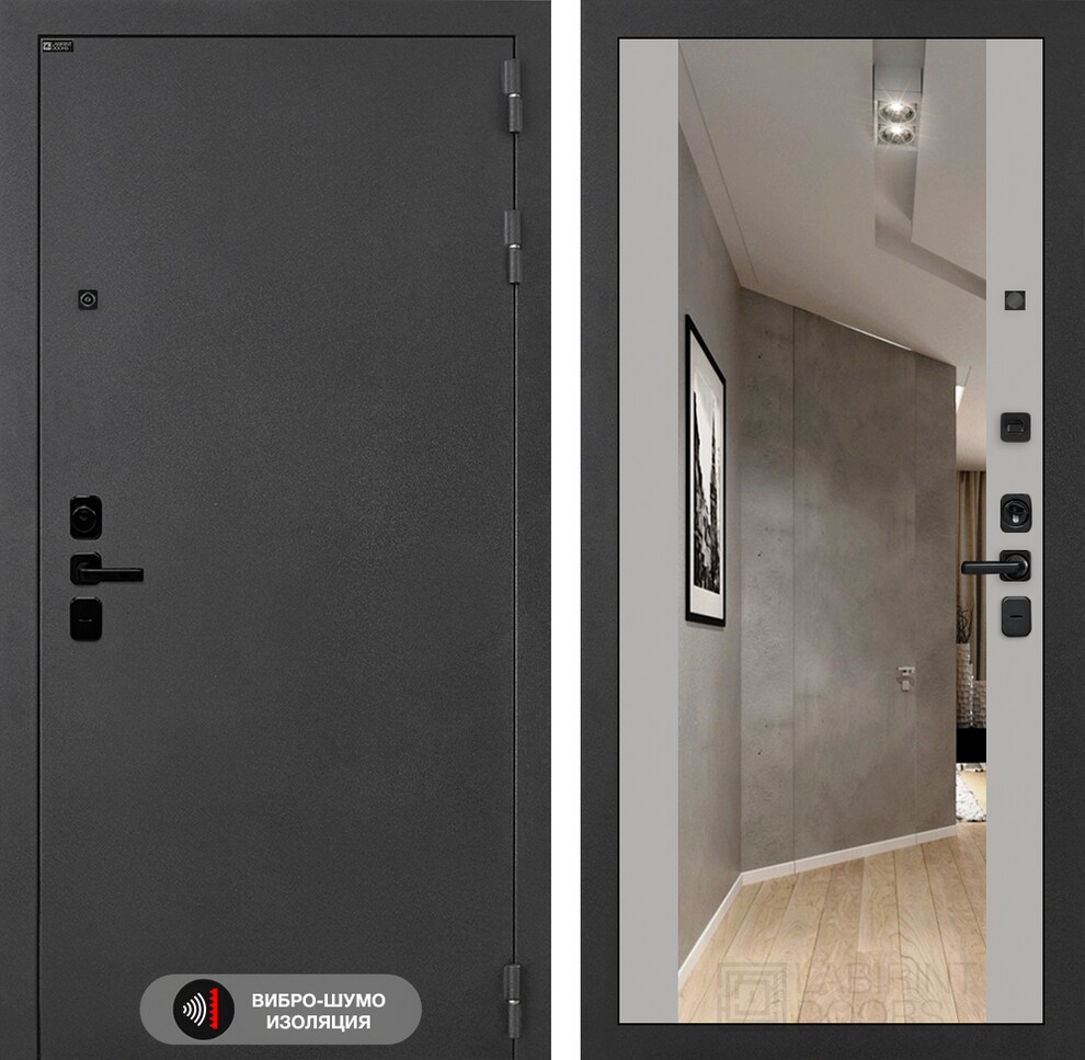 Входная дверь ART LT-19 | внутри с Зеркалом Максимум - Грей софт