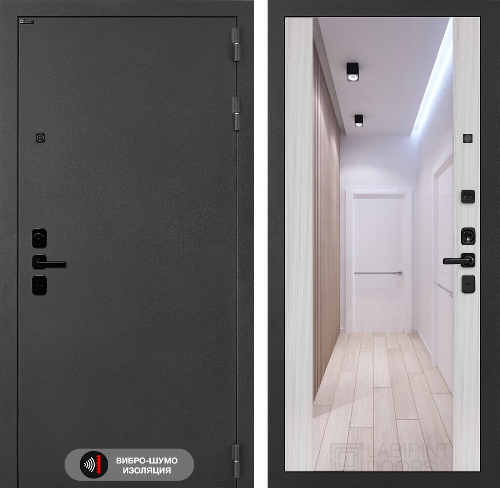 Входная дверь ART LT-19 | внутри с Зеркалом Максимум - Сандал белый