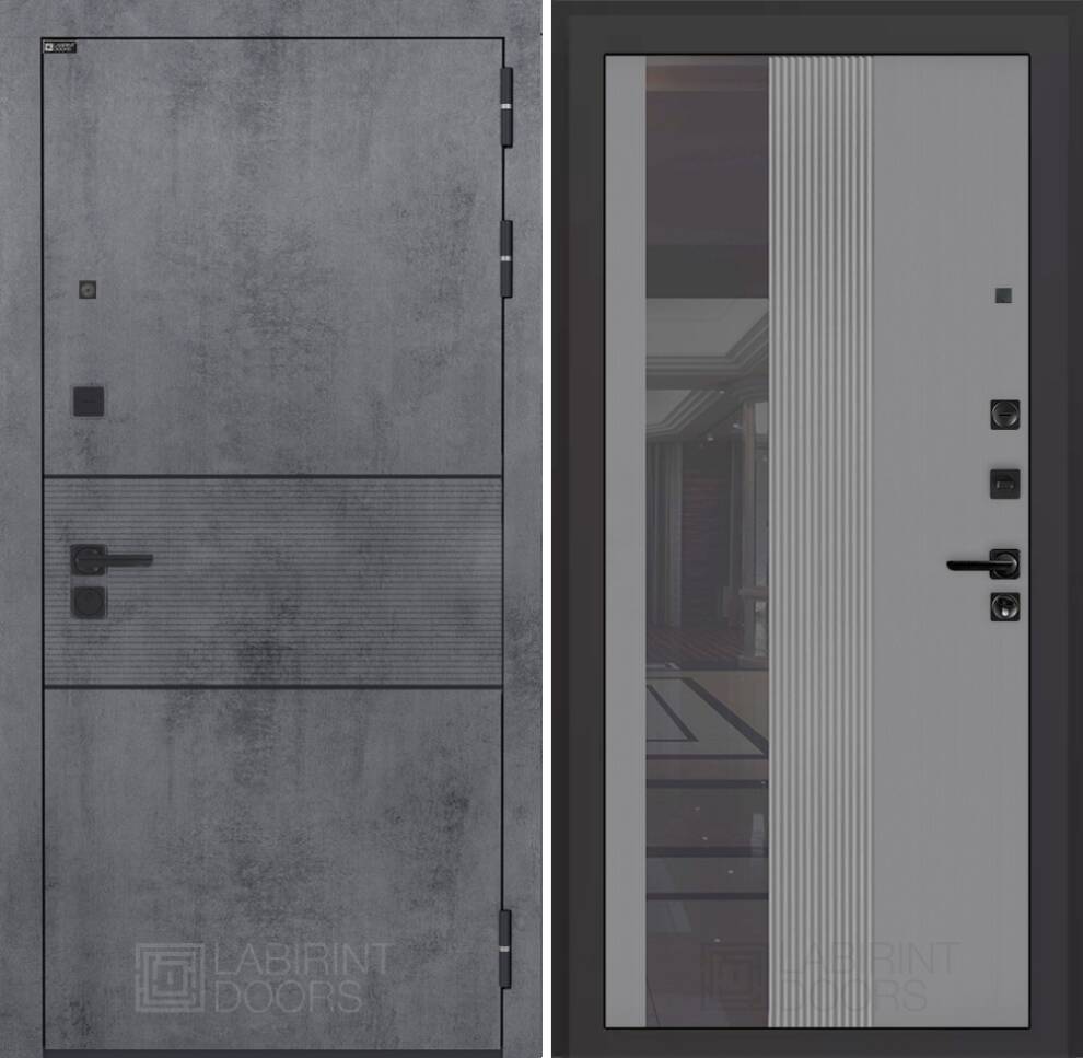 Входная дверь ART LT-21 | внутри с Зеркалом 32 тонированным - Серый рельеф софт