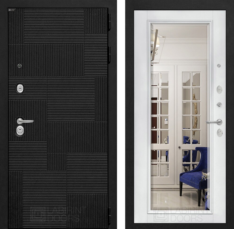 Входная дверь ART LT-23 | внутри с Зеркалом Фацет - Белый софт