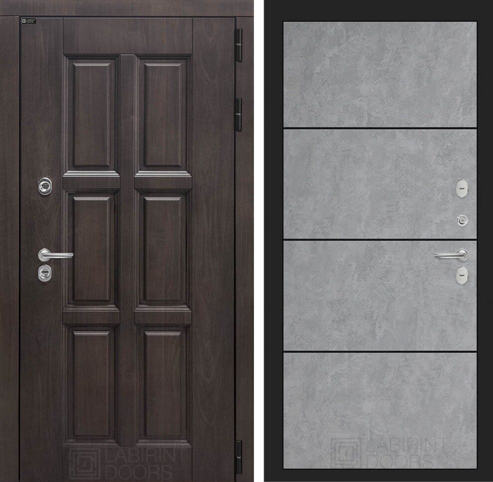 Входная дверь ART LT-24T | внутри 25 - Бетон светлый, черный молдинг