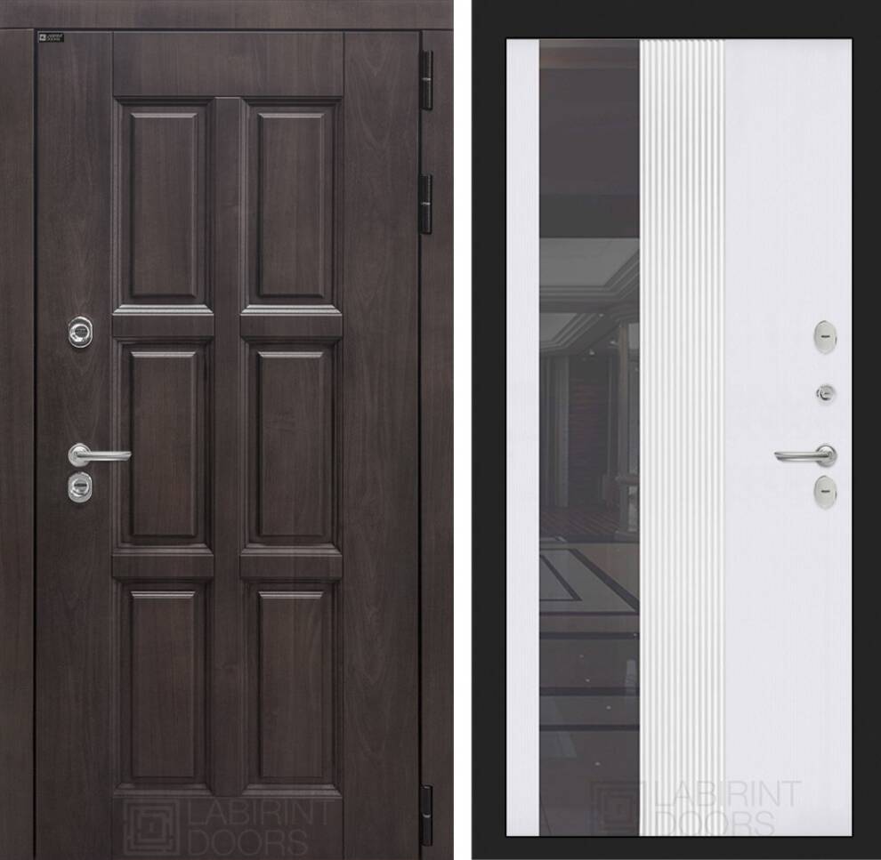Входная дверь ART LT-24T | внутри с Зеркалом 32 тонированным - Белый рельеф софт