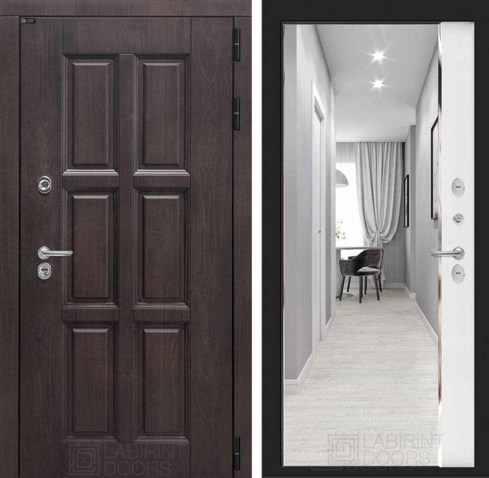 Входная дверь ART LT-24T | внутри с зеркалом Панорама - Белый софт
