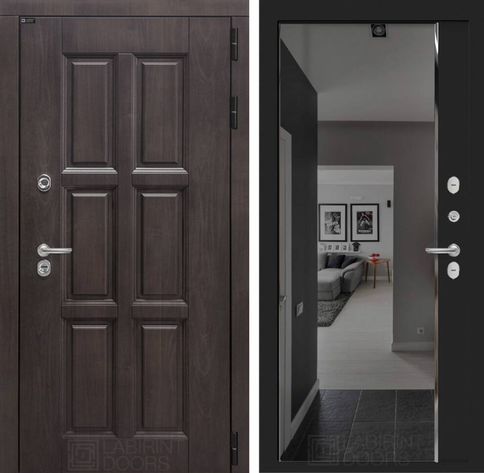 Входная дверь ART LT-24T | внутри с зеркалом Панорама с тонировкой - Черный кварц
