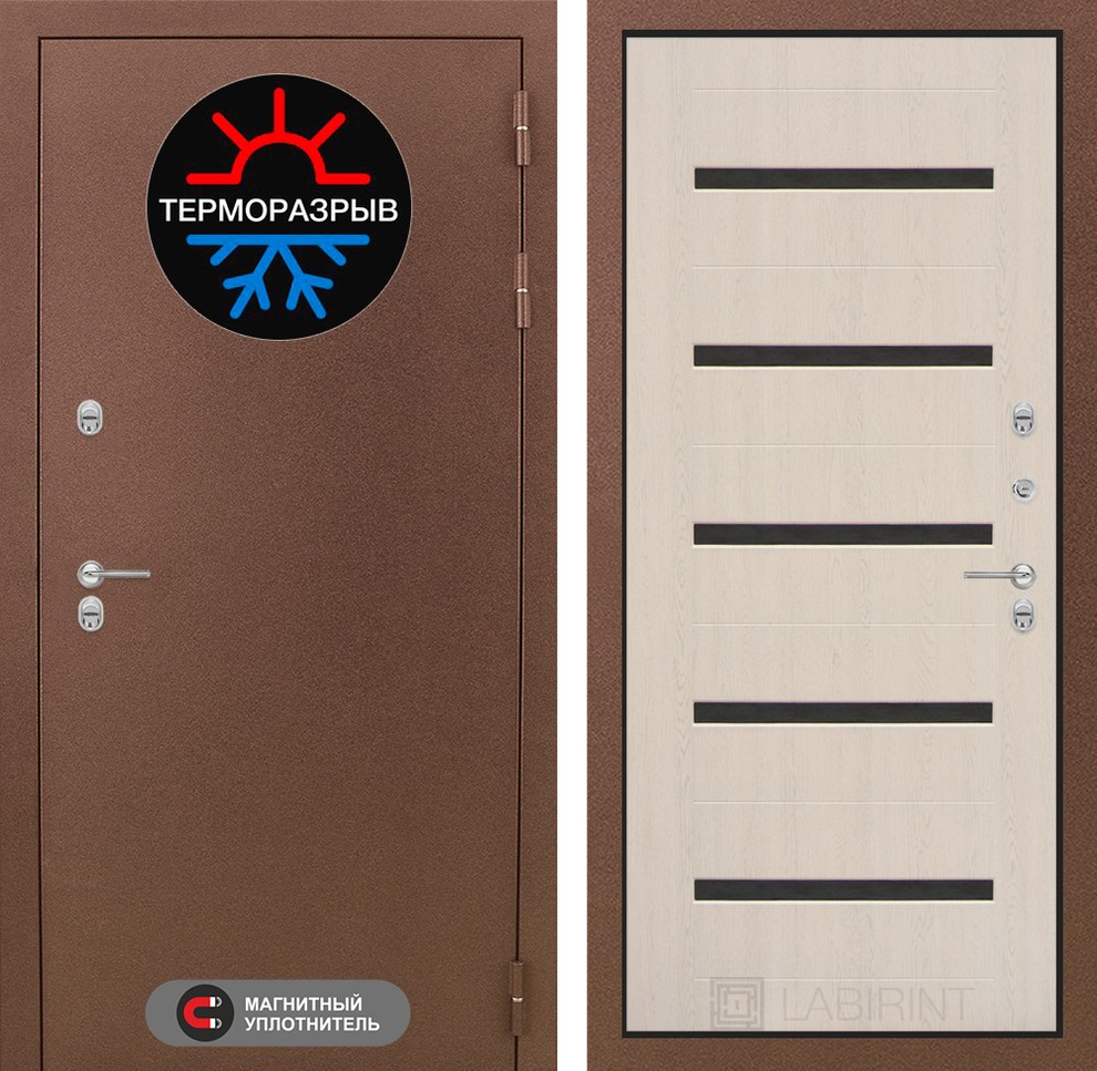 Входная дверь ART LT-25T | внутри 01 - Беленый дуб, стекло черное