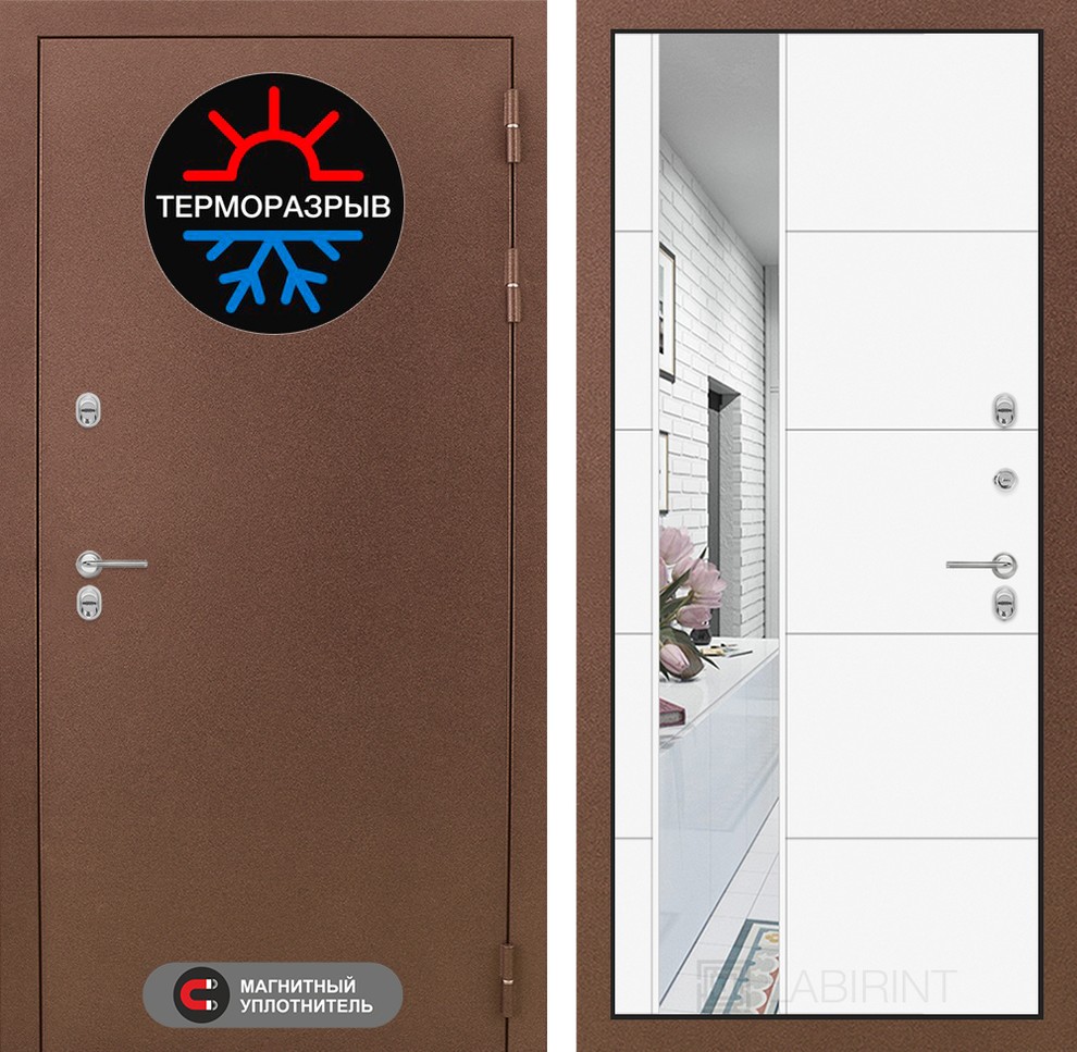 Входная дверь ART LT-25T | внутри с Зеркалом 19 - Белый софт