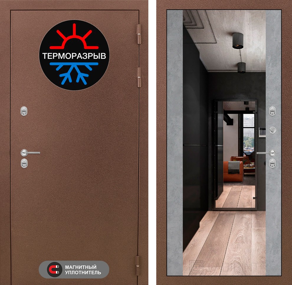 Входная дверь ART LT-25T | внутри с Зеркалом Максимум - Бетон светлый