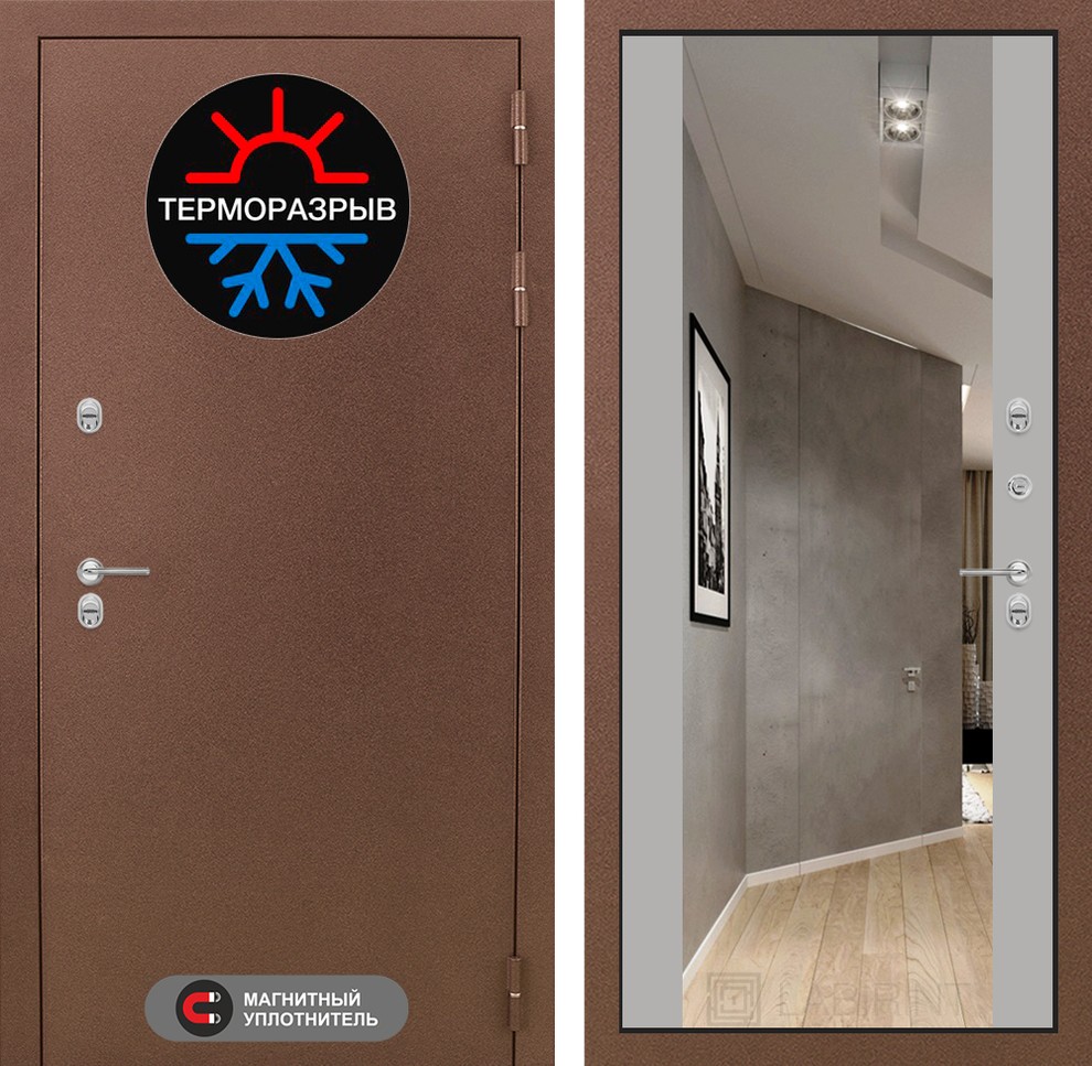Входная дверь ART LT-25T | внутри с Зеркалом Максимум - Грей софт