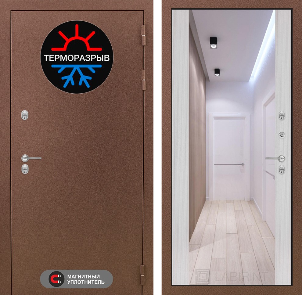 Входная дверь ART LT-25T | внутри с Зеркалом Максимум - Сандал белый