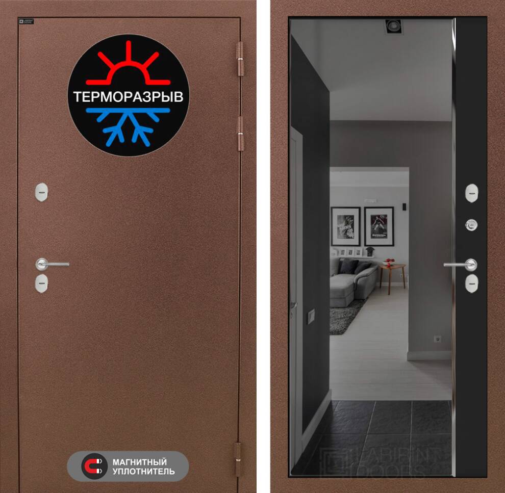 Входная дверь ART LT-25T | внутри с зеркалом Панорама с тонировкой - Черный кварц