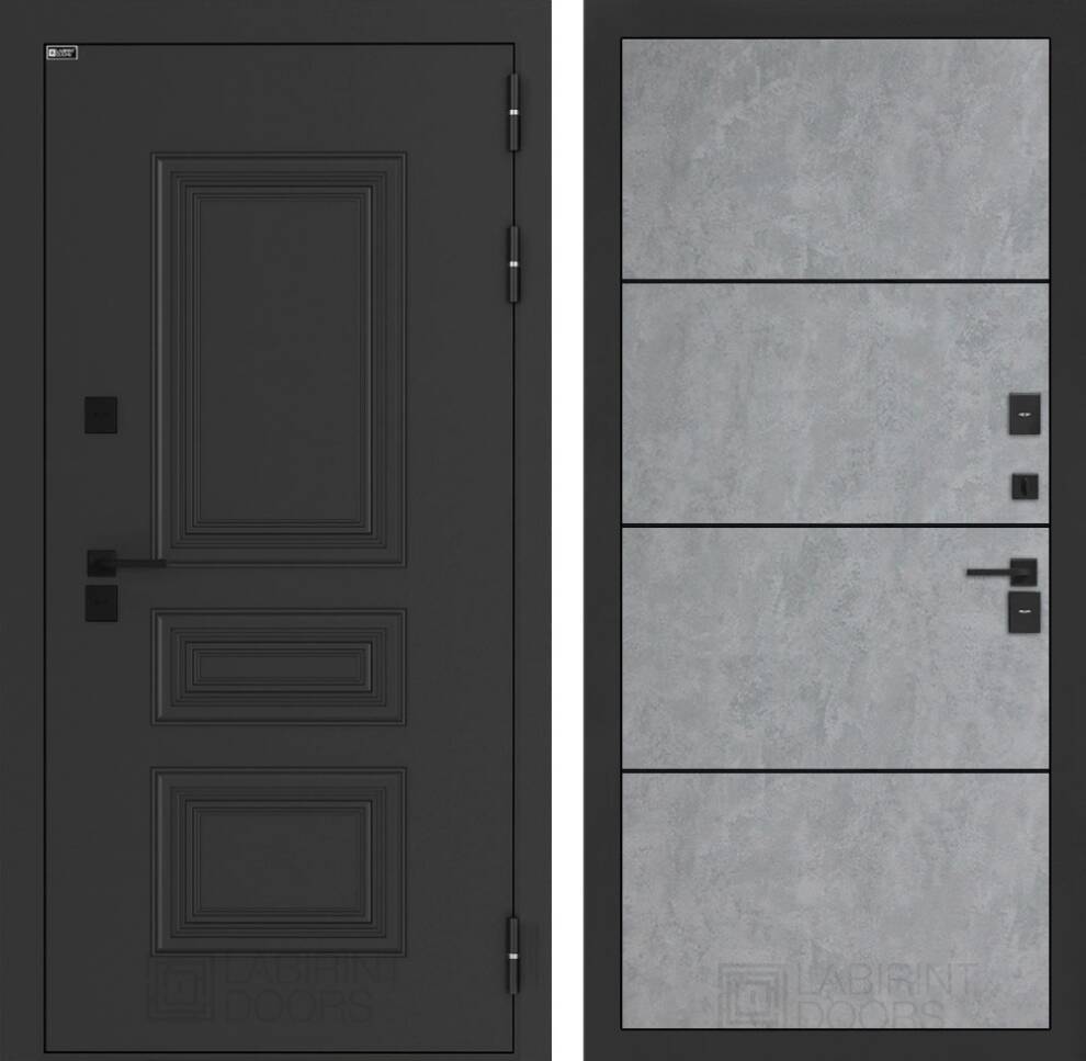Входная дверь ART LT-26T | внутри 25 - Бетон светлый, черный молдинг