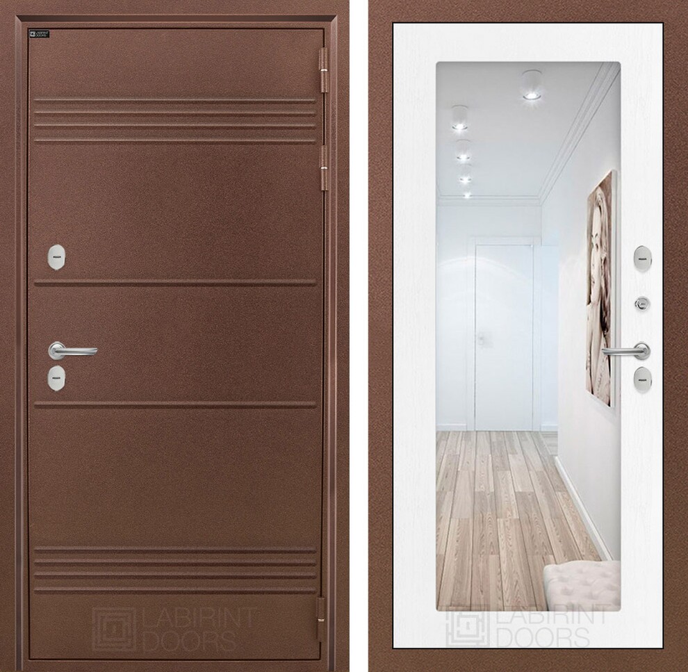 Входная дверь ART LT-29T | внутри с Зеркалом 18 - Белое дерево