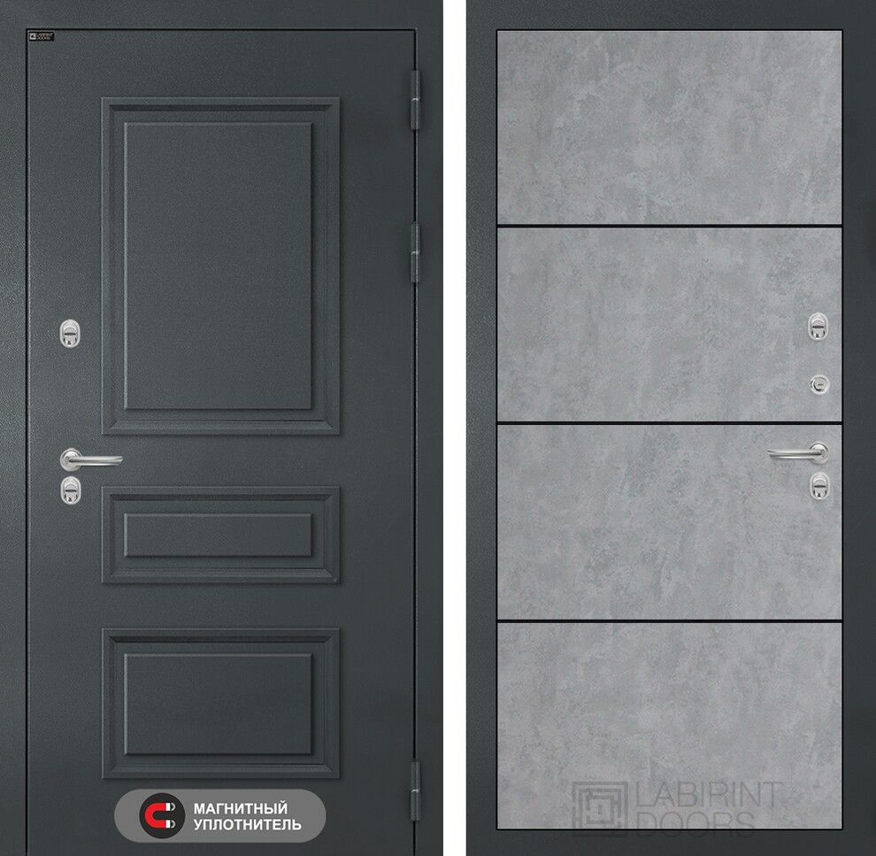 Входная дверь ART LT-30T | внутри 25 - Бетон светлый, черный молдинг