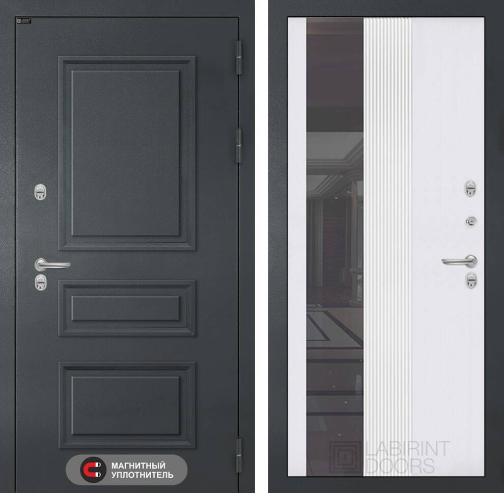 Входная дверь ART LT-30T | внутри с Зеркалом 32 тонированным - Белый рельеф софт
