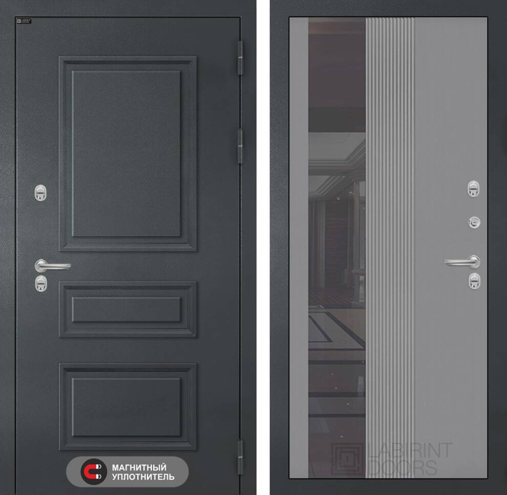 Входная дверь ART LT-30T | внутри с Зеркалом 32 тонированным - Серый рельеф софт