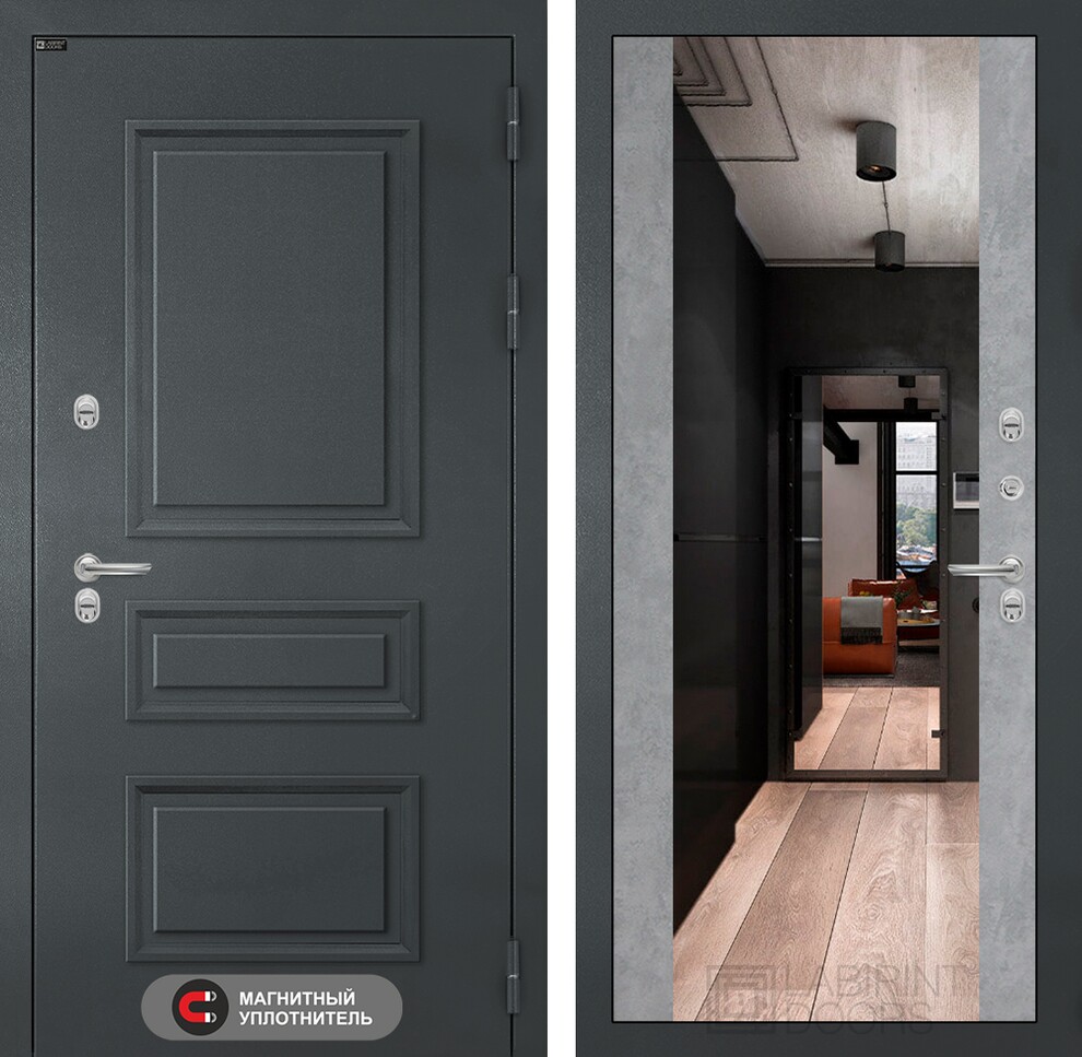 Входная дверь ART LT-30T | внутри с зеркалом Максимум - Бетон светлый