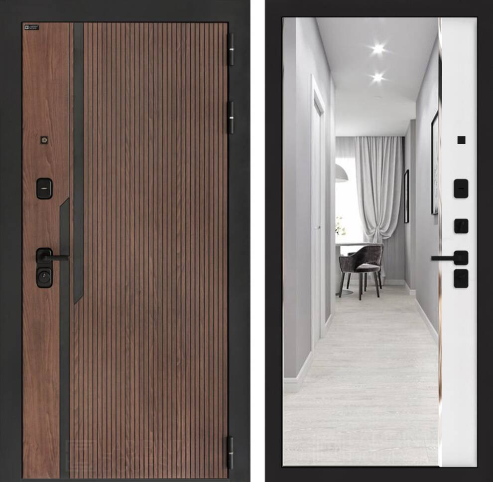 Входная дверь ART LT-34 | внутри с зеркалом Панорама - Белый софт