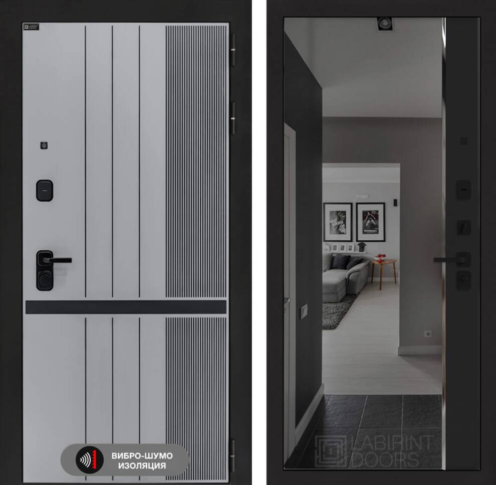 Входная дверь ART LT-36 | внутри с зеркалом Панорама с тонировкой - Черный кварц