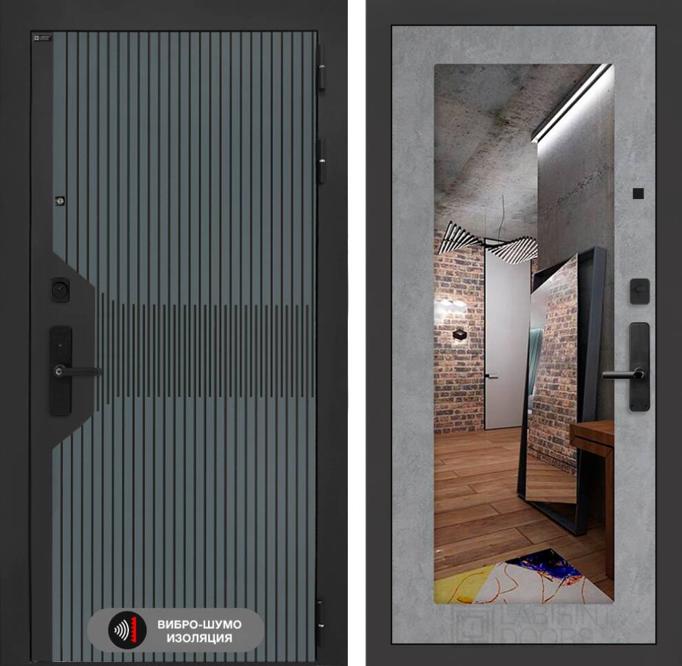 Входная дверь ART LT-38 | внутри с Зеркалом 18 - Бетон светлый