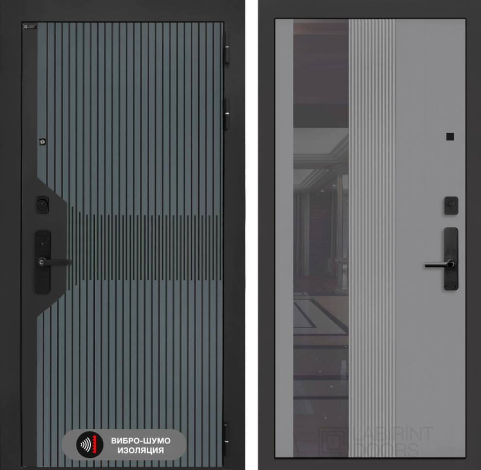 Входная дверь ART LT-38 | внутри с Зеркалом 32 тонированным - Серый рельеф софт