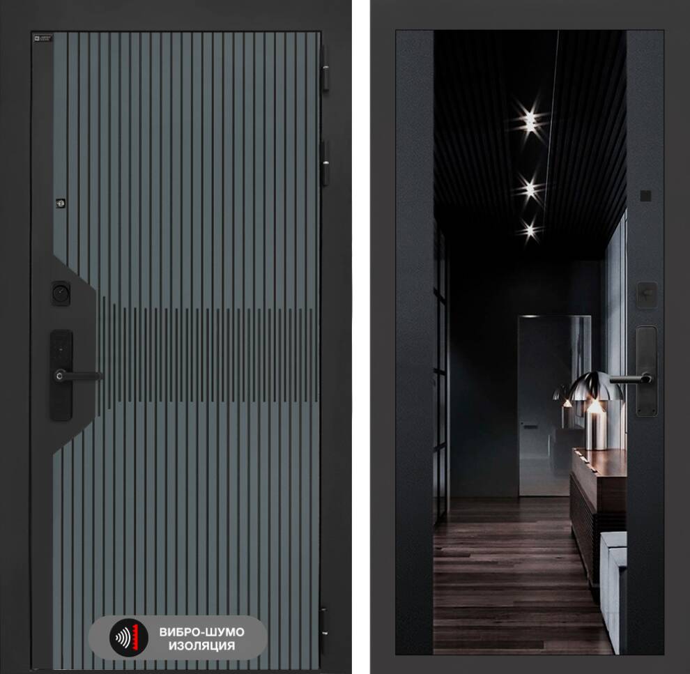 Входная дверь ART LT-38 | внутри с Зеркалом тонированным Максимум - Черный кварц