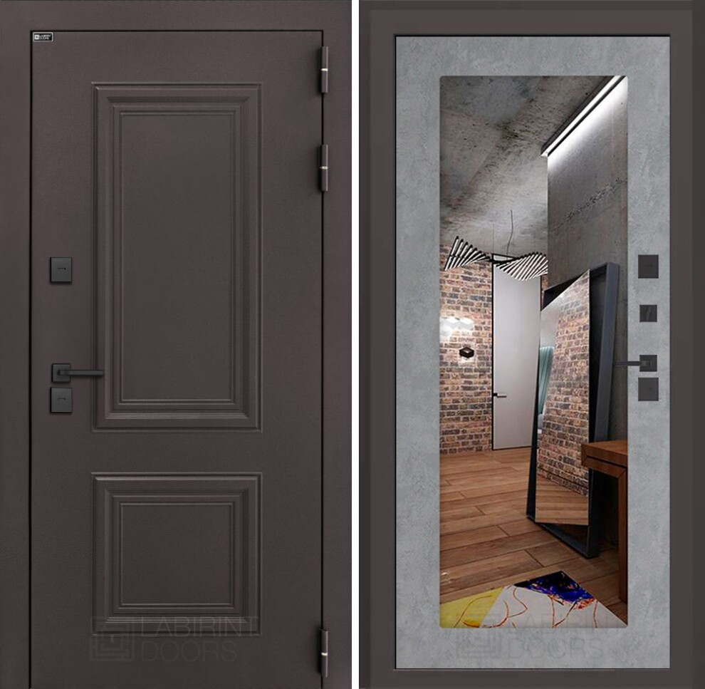Входная дверь ART LT-39Т | внутри с зеркалом 18 - Бетон светлый