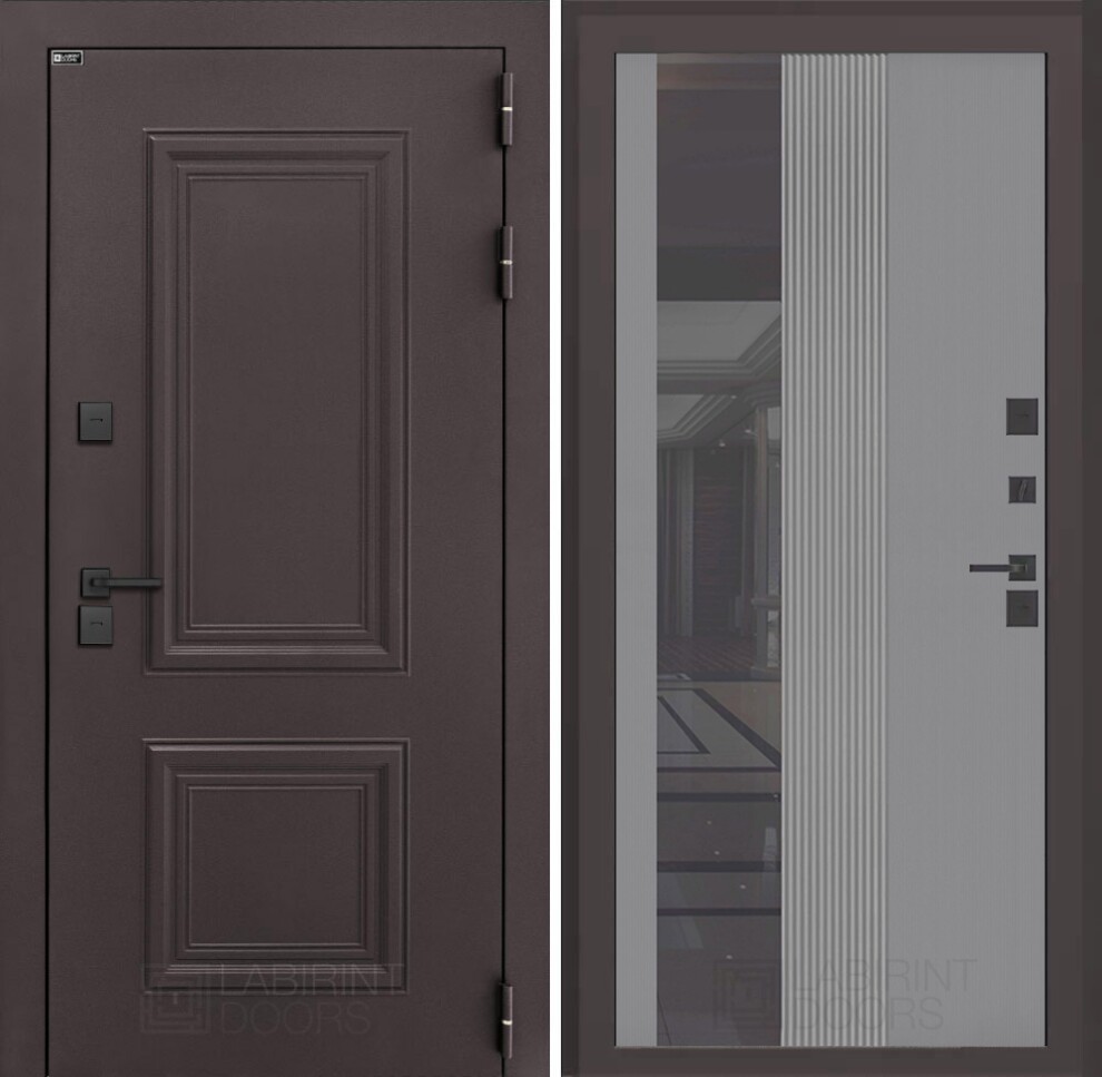 Входная дверь ART LT-39Т | внутри с зеркалом 32 тонированным - Серый рельеф софт